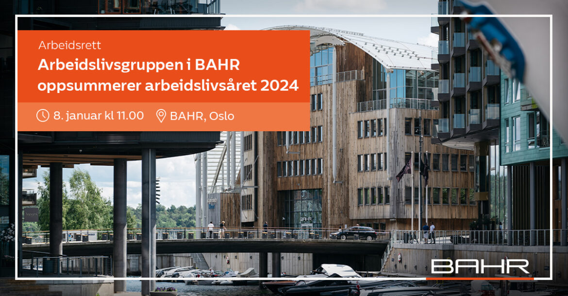 Onsdag 8. januar inviterer Arbeidslivsgruppen i BAHR til lunsjseminar der vi vil gi en grundig gjennomgang av de viktigste endringene som har skjedd i løpet av året. Vi vil blant annet dekke: