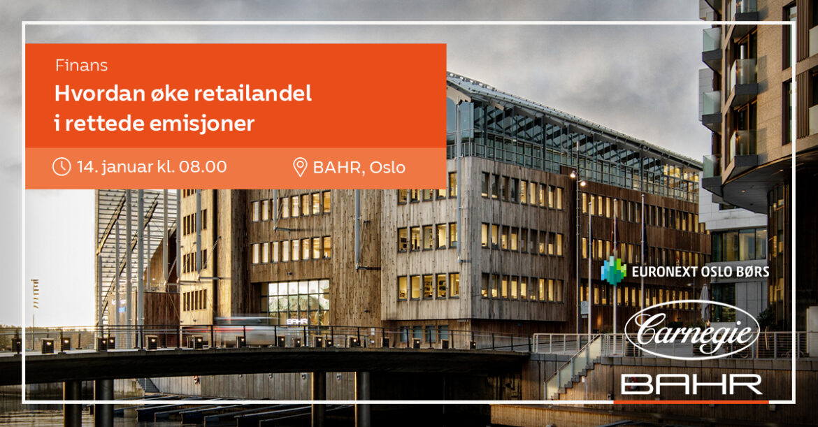 Vi inviterer til morgenseminar hvor representanter fra Oslo Børs, Carnegie og BAHR vil presentere muligheter og modeller for å øke deltakelsen av ikke-profesjonelle aksjeeiere i kapitalinnhentinger i det norske markedet. Det har allerede vært gjennomført flere kapitalinnhentinger ved hjelp av PrimaryBid, og erfaringer fra disse vil bli diskutert på seminaret. Dette er en unik mulighet til å få innsikt i hvordan vi kan skape en kapitalmarkedsprosess med bredere distribusjon.