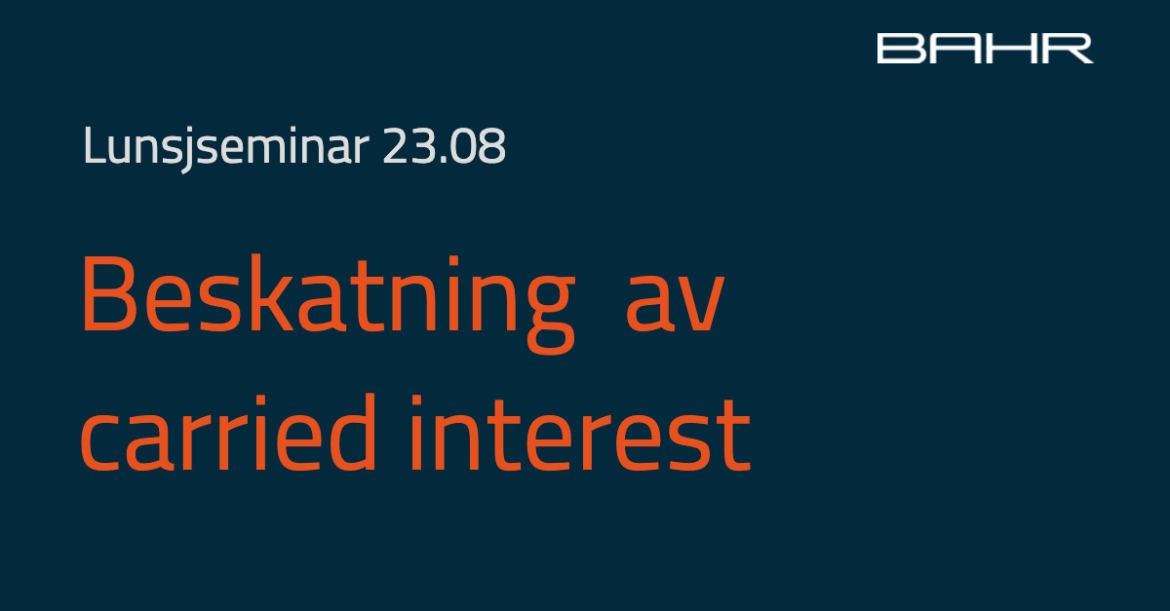 BAHR har bistått i forbindelse med strukturering og organisering av carried interest i mer enn 20 år og bistår løpende i en titalls saker. Vi inviterer derfor til seminar, hvor Peter Hammerich og Camilla Jøtun vil se nærmere på hva som er gjeldende rett, hvorvidt man kan forvente endringer, og sist men ikke minst hva bør man gjøre nå. Vi har allerede god påmelding, men dette er tema hvor vi mener det er viktig å samle så mange som mulig og også på denne måten bidra til en helhetlig praksis hos aktørene. Så meld dere på!