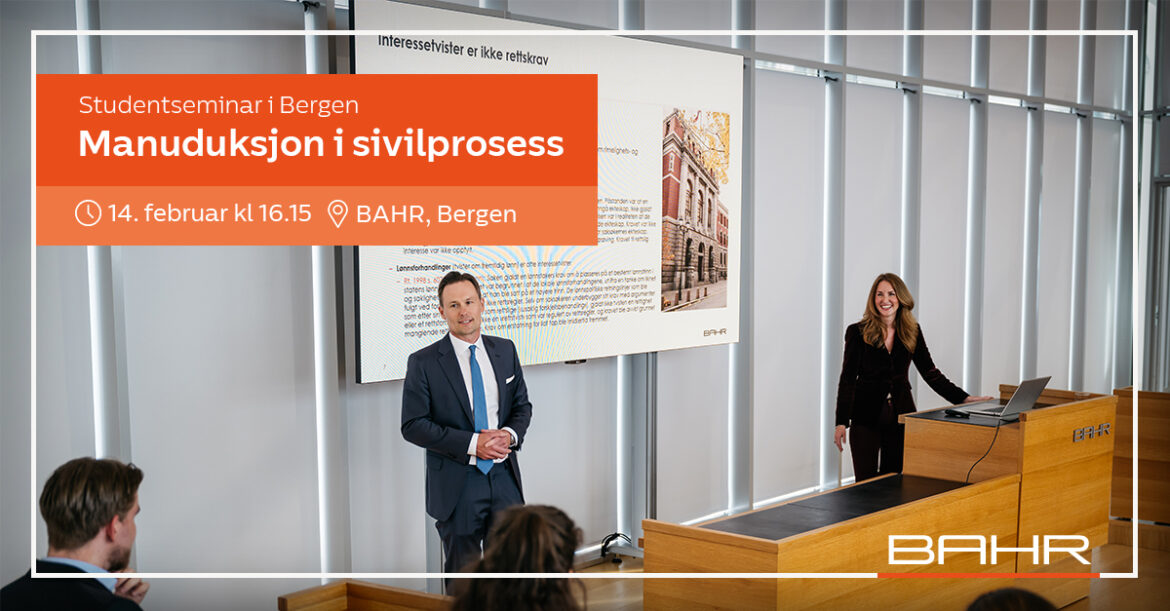 BAHRs tvisteløsningsgruppe har gleden av å invitere til manuduksjon i sivilprosess ved partner og advokat Atle Skaldebø-Rød og advokat Mathilde Lund Meltvedt.