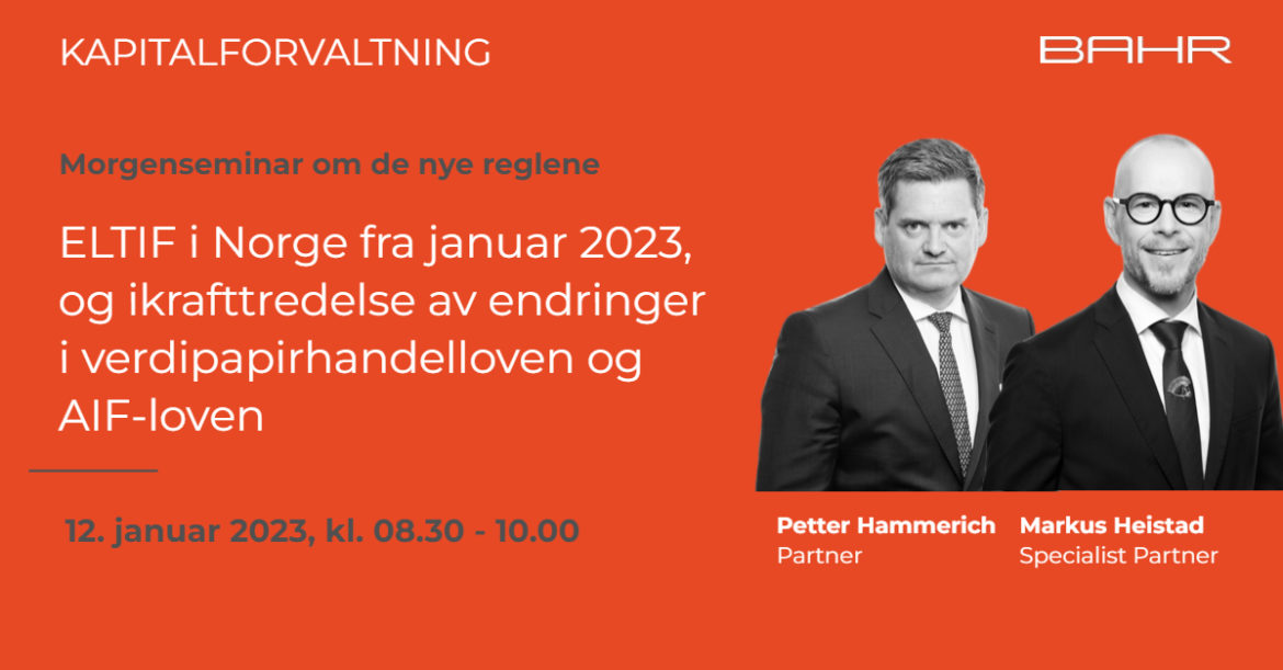 Morgenseminar | ELTIF i Norge fra januar 2023 og ikrafttredelse av endringer i verdipapirfondloven og AIF-loven