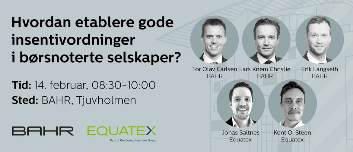 BAHR inviterer sammen med Equatex til morgenseminar om hvordan man kan etablere gode insentivordninger for ansatte i børsnoterte selskaper.