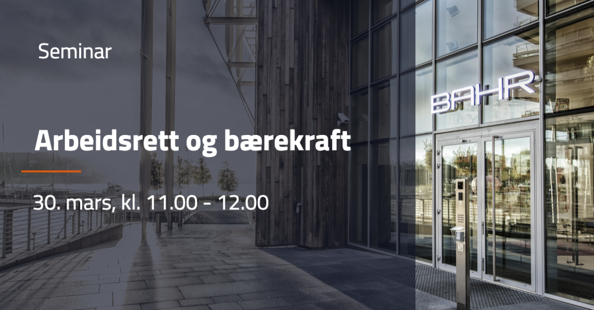 Det stilles i dag høye krav til arbeidsgiver. Det gjelder både norske og internasjonale regler. De siste årene har etterlevelse av bærekraftskravene særlig vært i fokus. Arbeidslivsgruppen i BAHR har nå utviklet en egen oversikt over de viktigste bærekraftsreglene som arbeidsgivere må kjenne til og overholde. I seminaret vil vi lansere oversikten og gå gjennom de sentrale kravene for arbeidsgivere.