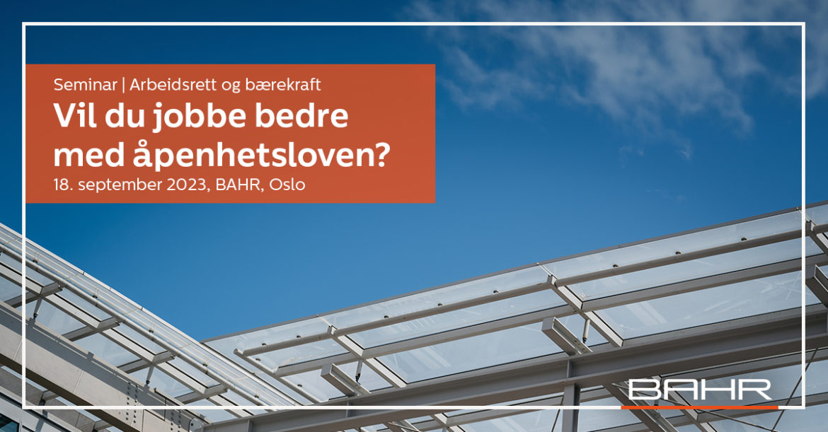 Sammen med Raftostiftelsen og REMA 1000 inviterer arbeidslivsgruppen i BAHR til seminar. Sammen vil vi belyse utvalgte temaer for å gjøre deg og din virksomhet i stand til å jobbe mer målrettet med åpenhetsloven.