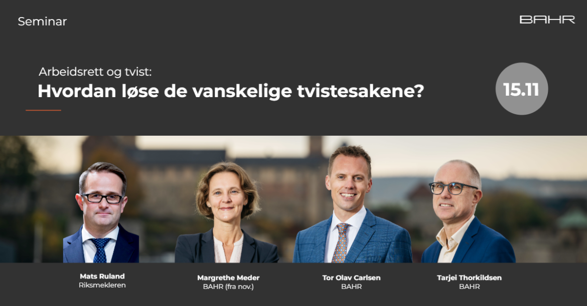 For å gi innblikk i hvordan man best håndterer krevende saker inviteres til seminar. Her vil også en av landets mest rutinerte arbeidsrettslige tvisteløsere, Riksmekler Mats Ruland, dele sine erfaringer. Sommeren 2022 bidro han til å løse floken i SAS-streiken, og han har også meklet i en rekke konflikter hvor partene stod langt fra hverandre. Under seminaret vil du også bli kjent med det nyeste medlemmet i BAHRs Arbeidslivsgruppe, partner Margrethe Meder. Margrethe kommer fra rollen som leder av NHO-advokatene, og hun er anerkjent som en av landets ledende arbeidsrettsadvokater .