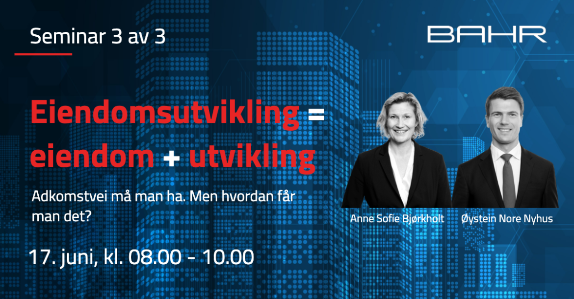 Seminarene vil bli ledet av de to erfarne advokatene Anne Sofie Bjørkholt og Øystein Nore Nyhus i BAHRs eiendomsgruppe.