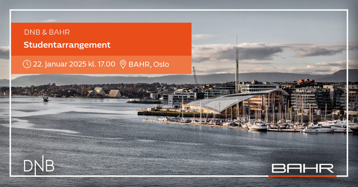 BAHR og DNB har gleden av å invitere til studentseminar med påfølgende mingling og tapas onsdag 22. januar klokken 17.00 i Tjuvholmen allè 16.