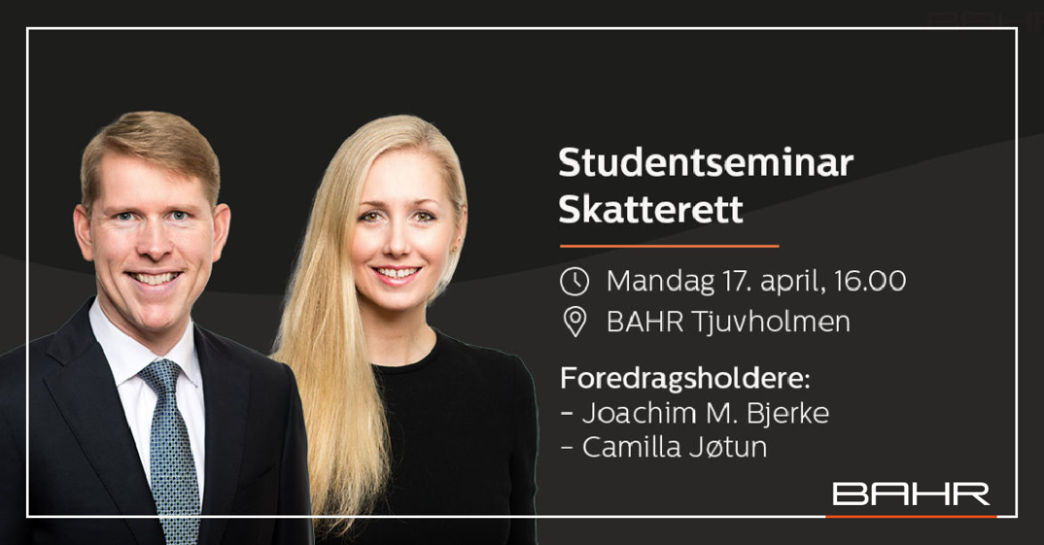 Seminaret består av 3 faglige bolker á 45 minutter som holdes av to av BAHRs skatteeksperter, partnerne Camilla Jøtun og Joachim M. Bjerke.