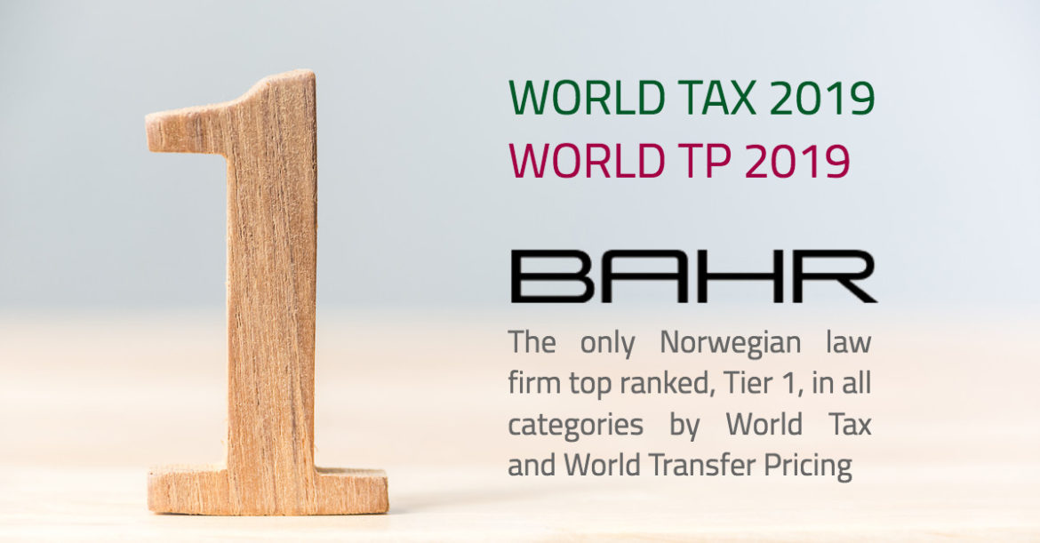 BAHR er som eneste norske advokatfirma topprangert (tier 1) i alle kategorier i årets utgaver av World Tax og World Transfer Pricing