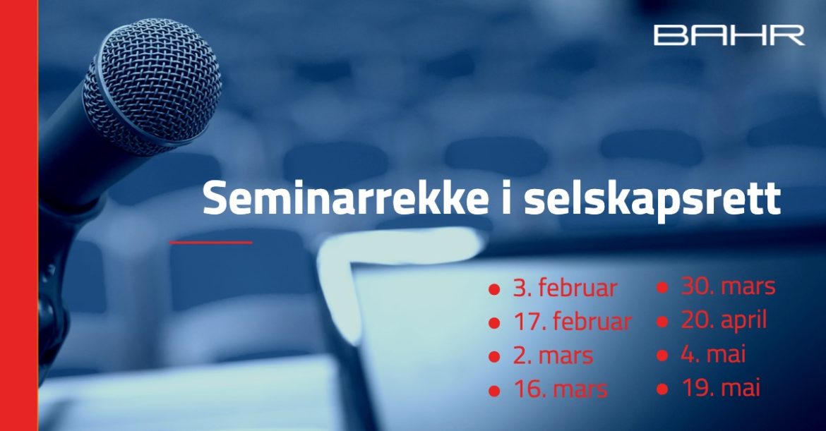 BAHR inviterer til seminarrekke i selskapsrett. Her behandles de mest interessante temaene innenfor selskapsretten, nærmere bestemt: