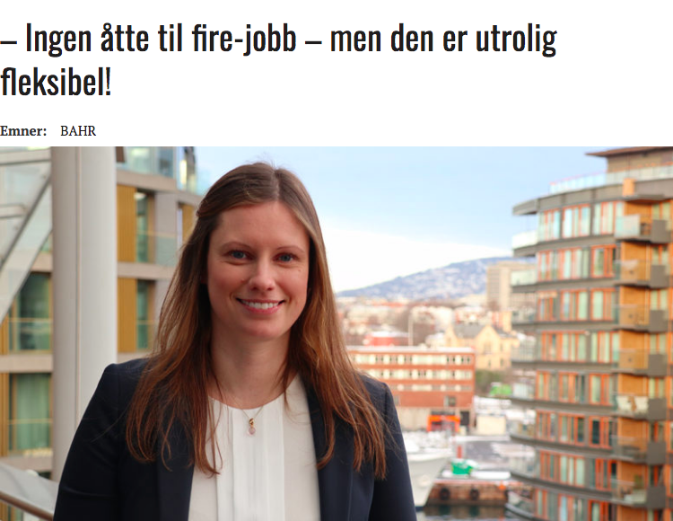 I min tid i BAHR har jeg aldri opplevd at jeg har hatt færre muligheter enn mennene. Partnerne i firmaet har hele tiden støttet meg i min karrierevei, og oppfordret til å satse.
