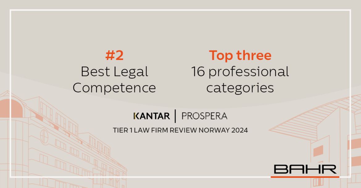 The "Prospera Tier 1 Law Firm Review Norway 2024", conducted by the independent market research company Kantar SIFO, has once again recognized BAHR as one of the leading Norwegian commercial law firms. This distinction reflects our enduring commitment to delivering legal services of a high standard.