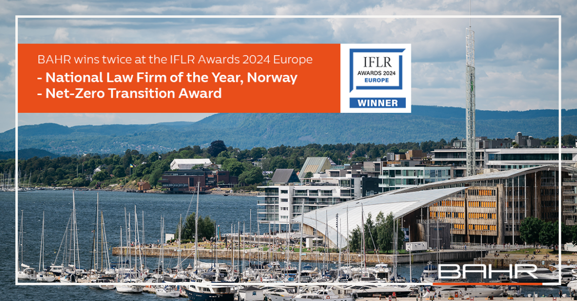 For the second year in a row, BAHR was named “National Law Firm of the Year, Norway” at the International Financial Law Review´s (IFLR) annual European awards ceremony held in London. Judged independently by IFLR’s editorial team, the award focus exclusively on legal innovation in cross-border transactions that reached financial close during the 2023 calendar year.