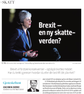 BAHR-partner Joachim M. Bjerke har som fast gjesteskribent skrevet innlegg i Finansavisen 22. februar 2019. Her ser Bjerke nærmere på hvilke skattemessige konsekvenser Brexit kan få.