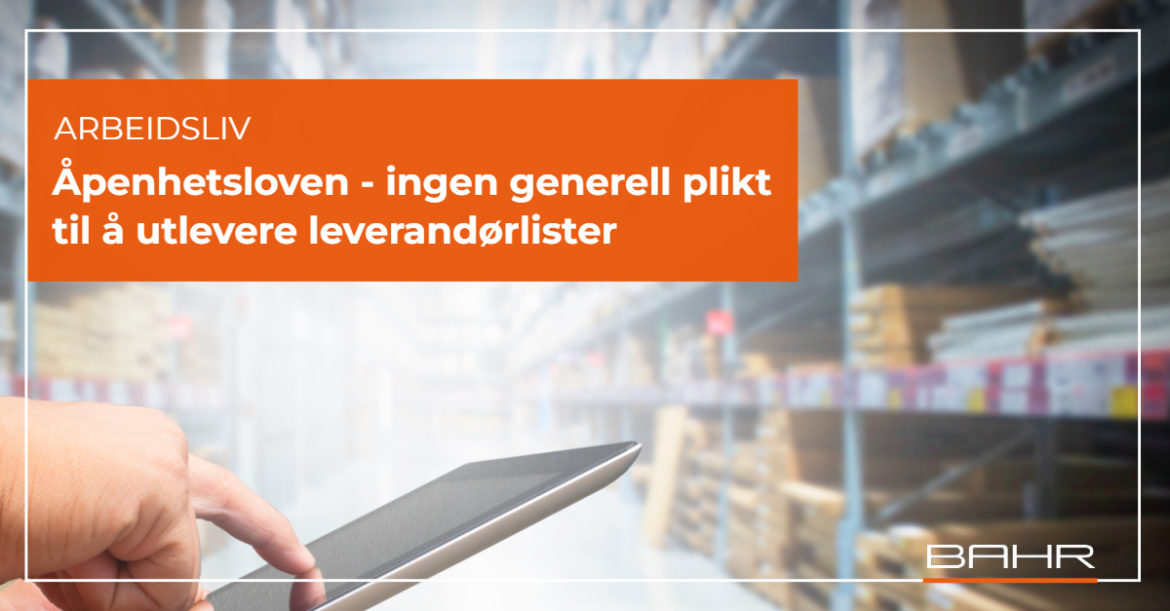 Arbeidsliv | Åpenhetsloven – ingen generell plikt til å utlevere leverandørlister