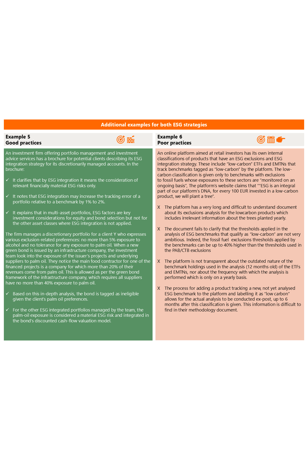 • Don’t misrepresent benchmark-tracking products – Don’t claim ESG integration if neither the product nor its ESG benchmark actually implements the strategy