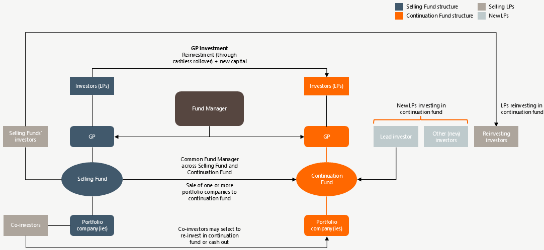 With fewer exit options—due to reduced buyer appetite and less favourable market conditions for IPOs—GPs increasingly seek alternative pathways, such as setting up continuation funds financed by new capital, typically involving both existing and new LPs. These funds allow GPs to avoid unfavorable sales, weather challenging market conditions, and position the portfolio asset for a more advantageous future exit, all while returning capital to investors.