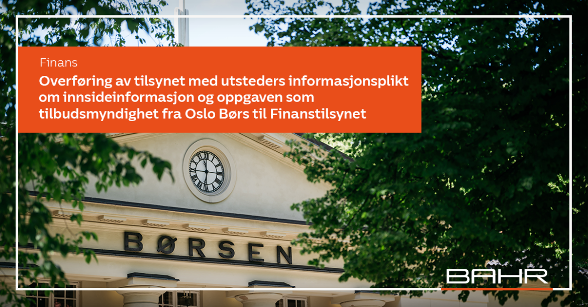 Finans | Overføring av tilsynet med utsteders informasjonsplikt om innsideinformasjon og oppgaven som tilbudsmyndighet fra Oslo Børs til Finanstilsynet