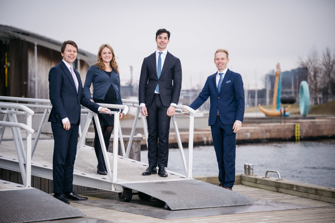 F. v. Partner Markus Nilssen, Senior Associate Vanessa Kalvenes. Associate Marcus Cordero-Moss og Associate Sondre Kyte. Foto: Erik N.H. Krafft