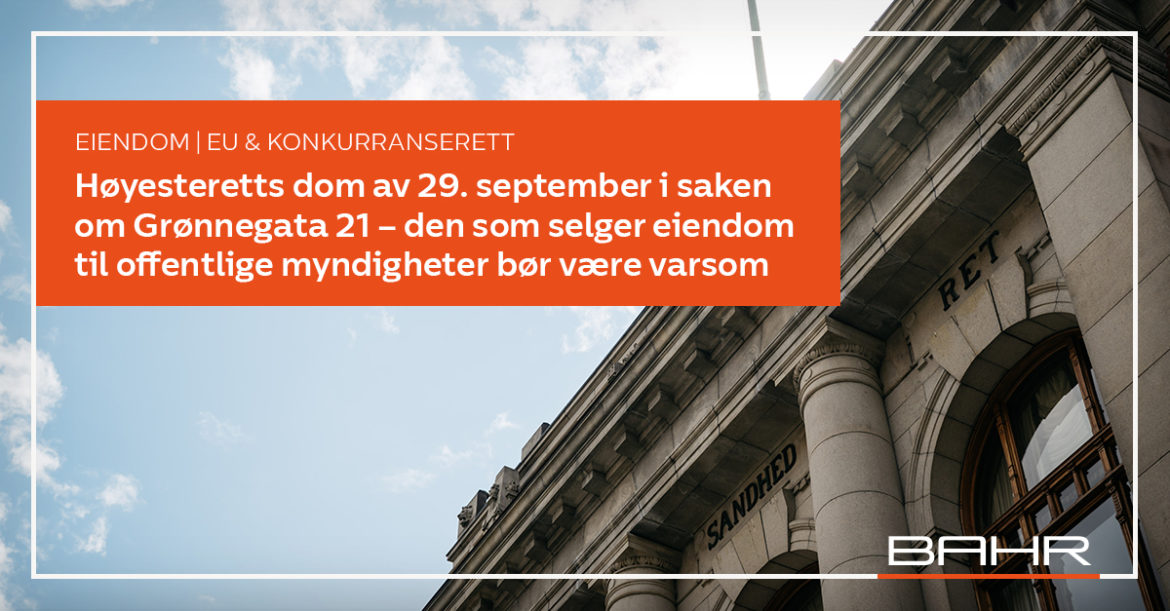Høyesteretts dom av 29. september i saken om Grønnegata 21 – den som selger eiendom til offentlige myndigheter bør være varsom