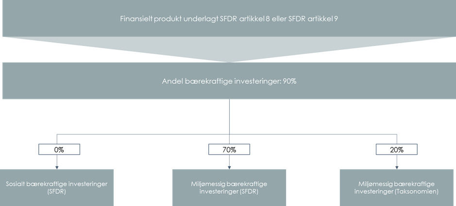 Forvaltere som tilbyr produkter underlagt SFDR artikkel 8 eller SFDR artikkel 9 må i tillegg til å opplyse andelen bærekraftige investeringer, også spesifisere hva slags bærekraftige investeringer produktet skal gjøre/har gjort: