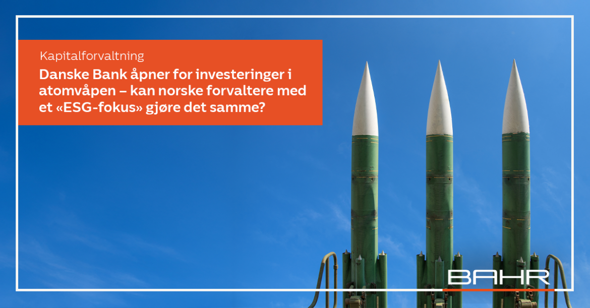 Kapitalforvaltning | Danske Bank åpner for investeringer i atomvåpen – kan norske forvaltere med et «ESG-fokus» gjøre det samme?