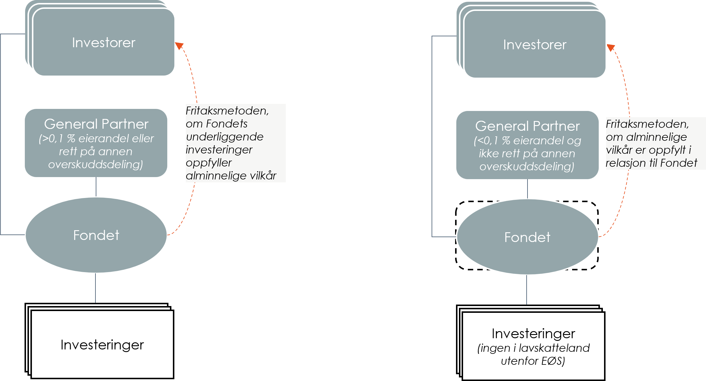 Et viktig tema for mange kapitalforvaltere er fritaksmetodens anvendelse på investeringer i ulike fondsstrukturer, herunder utenlandske fond etablert som såkalte «limited partnerships». Dette beror på fondets klassifisering for norske skatteformål og fondets investeringer/inntekter.