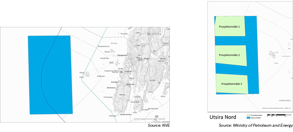 The area UN is located west of Haugesund and is due to the water depth only suitable for floating installations. For UN, three project areas will be awarded, each with a project capacity of minimum 460 MW and maximum 500 MW. The Government will consider increasing the capacity within each area up to 750 MW if studies show that this is feasible. The projects awarded area rights will be invited to compete for state aid later. The Government will propose to Parliament that the support take the form of a CfD contract, and that a CfD contract is awarded to two of the three projects for 500 MW each. This is an important clarification from Government, as it was not previously clear if support would be provided for only one of the projects. This may be a discussion point when Government’s proposal is processed by Parliament.