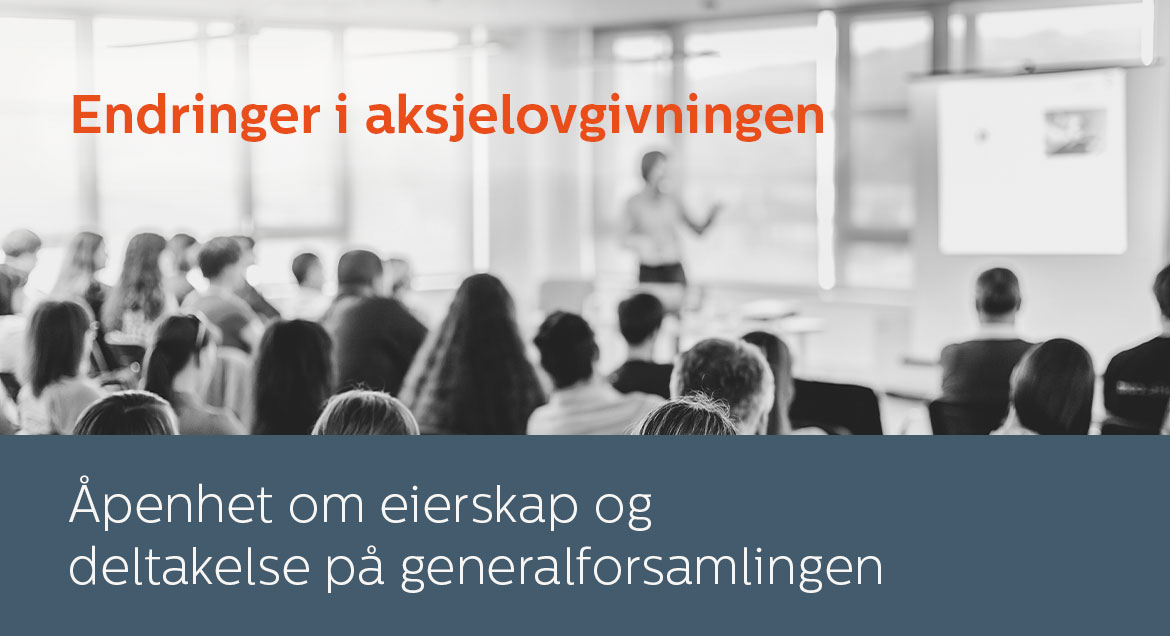 Den 1. juli 2023 trer endringer i aksjeloven, allmennaksjeloven og verdipapirsentralloven i kraft. Endringene gjelder aksjeeiernes rett til å delta på generalforsamlingen i selskaper med aksjer registrert i Euronext Securities Oslo (VPS), samt nye regler for forvalterregistrerte aksjer, forvaltere og formidlere. Aksjeselskaper som ikke har valgt å registrere aksjene i en verdipapirsentral berøres ikke av endringene.