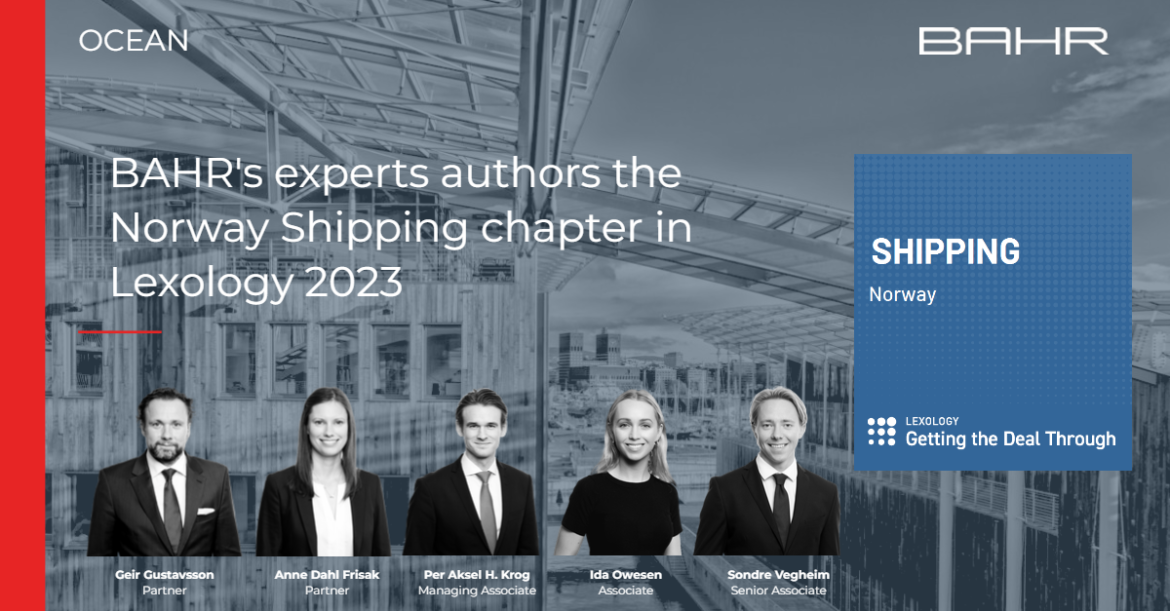 BAHR partners Anne Dahl Frisak and Geir Gustavsson, and lawyers Per Aksel Hammer Krog, Sondre Vegheim and Ida Owesen authors the Norway Shipping chapter in Lexology 2023. The chapter offer insights into newbuilding contracts; ship registration and mortgages; limitation of liability; port state control; classification societies; collision, salvage, wreck removal and pollution; ship arrest; judicial sale of vessels, carriage of goods by sea and bills of lading; shipping emissions; ship recycling; jurisdiction and dispute resolution; international conventions; and recent trends.