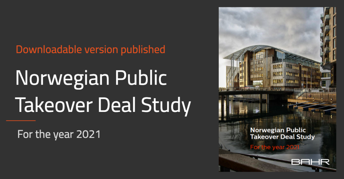 In this year’s edition of our annual Norwegian Public Takeover Deal Study we have examined the latest developments on key terms of voluntary and mandatory offers on the Oslo Stock Exchange. New for this edition is the inclusion of comparable figures from previous years and compiled numbers for transactions in the period between 2015 and 2021.