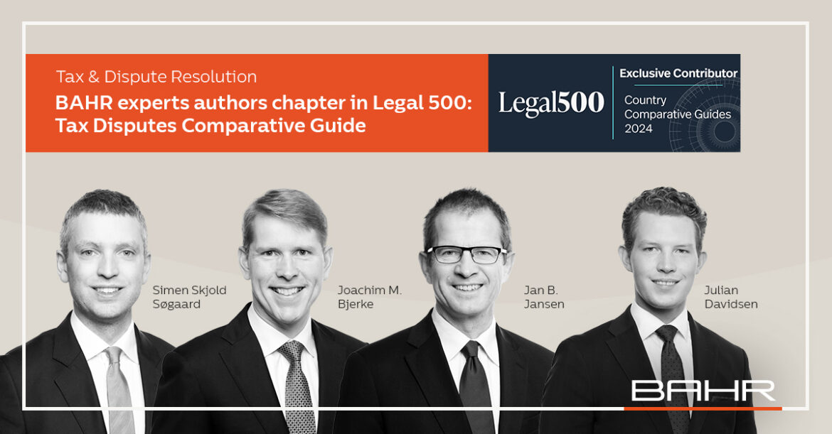 BAHR partners Simen Skjold Søgaard, Joachim M. Bjerke, Jan B. Jansen and Associate Julian Davidsen, have written the Norway chapter of the 2024 edition of Legal 500: Tax Disputes Comparative Guide.