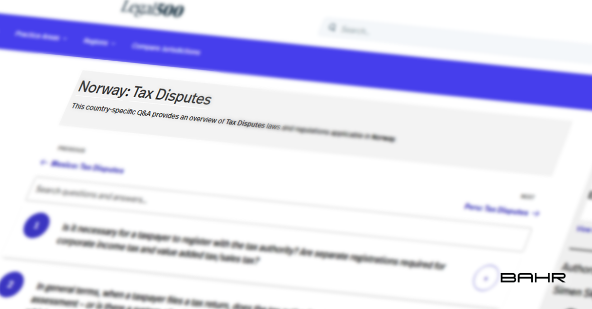 BAHR partners Simen Skjold Søgaard, Joachim M. Bjerke, Jan B. Jansen and Senior Associate Julian Davidsen, have written the Norway chapter of the 2025 edition of Legal 500: Tax Disputes Comparative Guide.